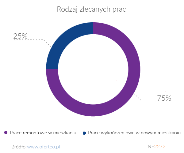 Według danych GUS deweloperzy oddali w 2015 roku do użytku ponad 147 tysięcy mieszkań. Natomiast wśród zapytań złożonych w serwisie Oferteo.pl, łączącym osoby poszukujące produktów i usług z ich dostawcami, 75% dotyczyło remontu mieszkania używanego. Z kolei 25% użytkowników deklarowało zamiar wykończenia nowego mieszkania. Częściej remontujemy niż wykańczamy, co wynika z faktu, że nowe mieszkanie wykańcza się tylko raz, a później remontuje często co kilka lat.