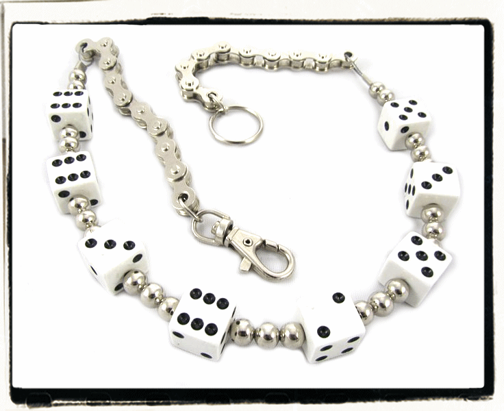 Ozdobne łańcuchy do spodni - solidne i wykonane z dużą dbałością o szczegóły Zakończone z jednej strony witką (kółko na klucze), z drugiej karabińczykiem o uchwycie nożycowym. Może posłużyć do przypięcia kluczy, portfela, pendriva, odtwarzacza mp3 itp.