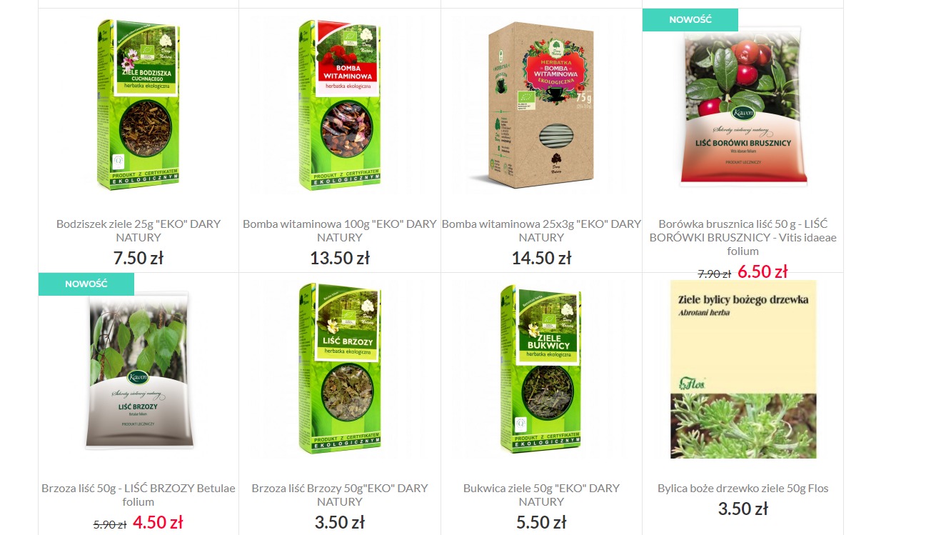 - zdrowa żywność (przyprawy ekologiczne, olejki konopne CBD, herbaty ziołowe, soki naturalne);