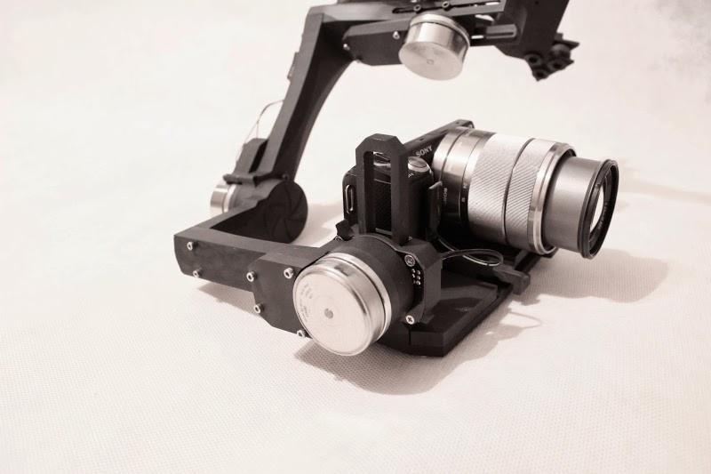 Gimbal do MILC/DSLR - dwuosiowy lub trzyosiowy montażu kamer typu Sony NEX 5/7, Panasonic GH2/GH3 , Canon 600D, 60D i innych mieszczących się w tym segmencie wymiarowym i wagowym