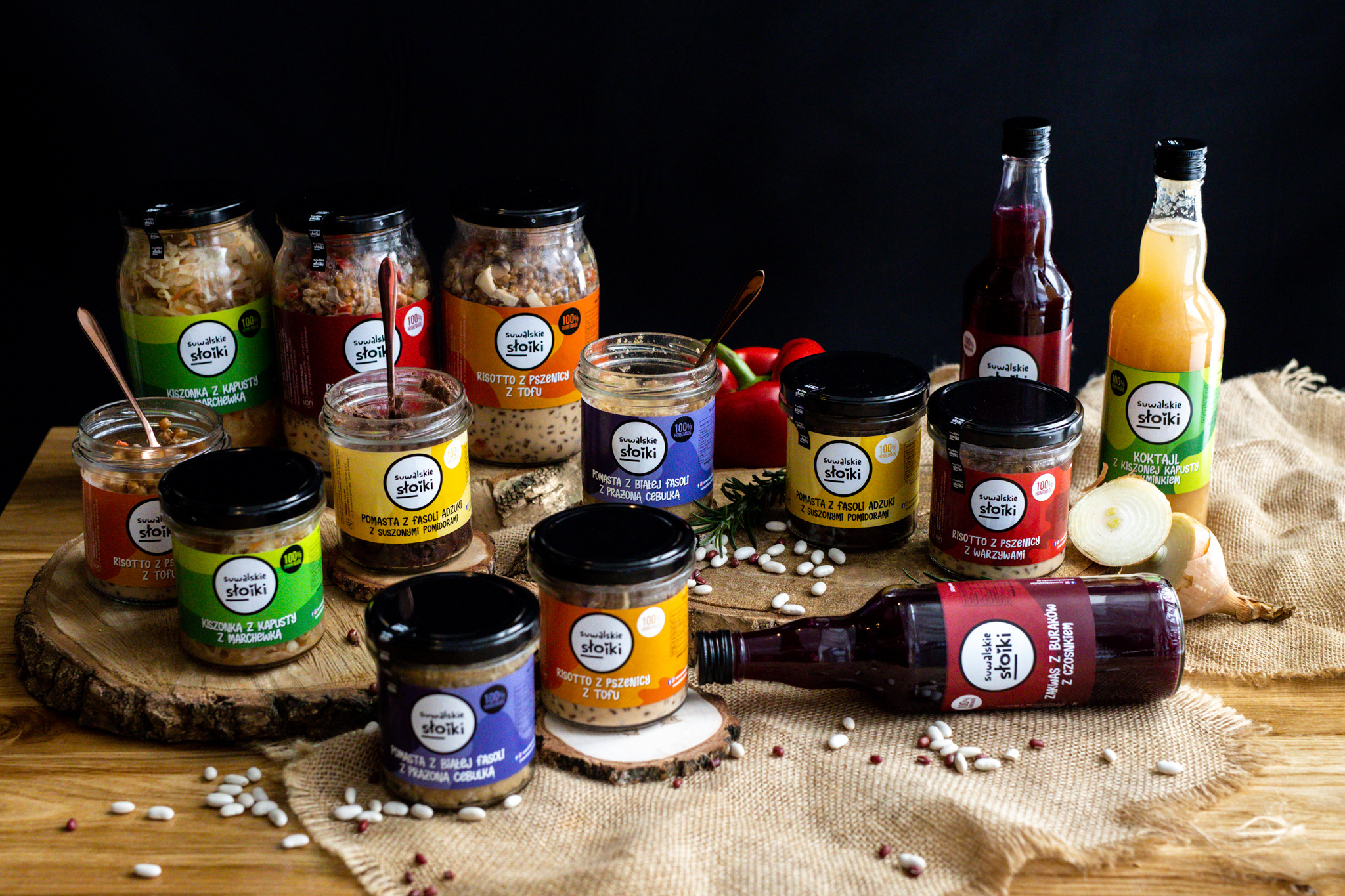 W znakomitej większości smaki naszych słoików pochodzą właśnie z naszej ukochanej Suwalszczyzny. Miejsca, które słynie z niełatwego klimatu, gdzie pod ziemią kryje się wieczna zmarzlina, powietrze nieskalane jest przemysłem ciężkim, otoczone wszechobecnymi lasami, oblane wodą z jezior i rzek. Jednak nie chcemy się zamykać, nasze głowy są otwarte na nowe smaki, nowe połączenia i nowe możliwości.