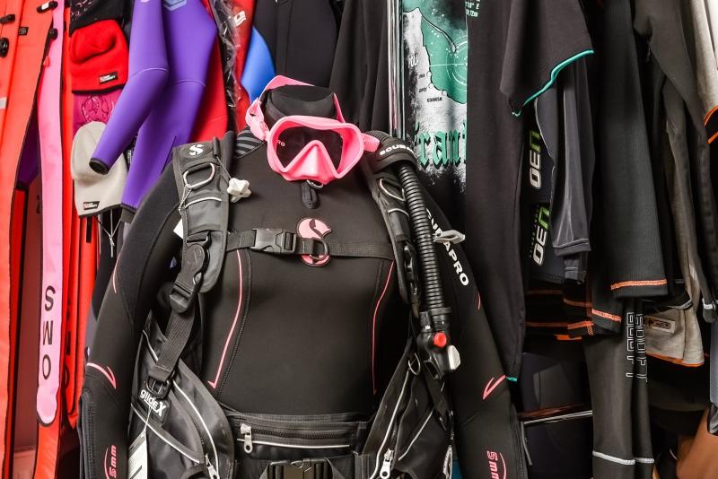 Oferujemy komplet odzieży potrzebnej do nurkowania.