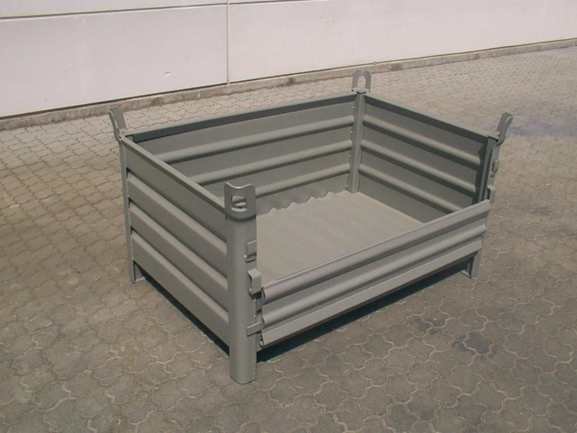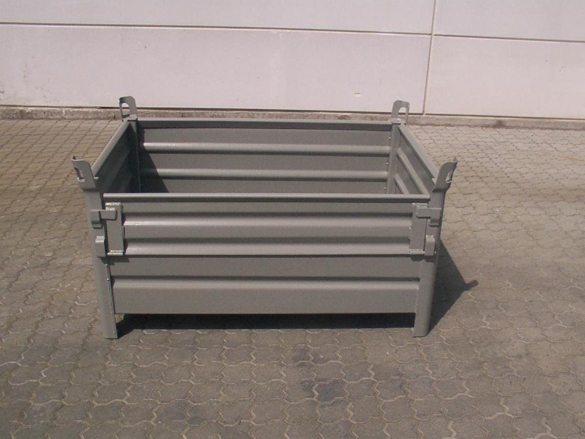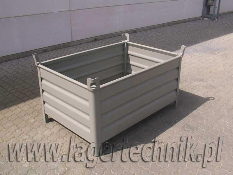 Pojemniki wykorzystywane w magazynowaniu i produkcji. Wykonanie pełne blaszane przystosowane do transportu widłowego jak i hakowego