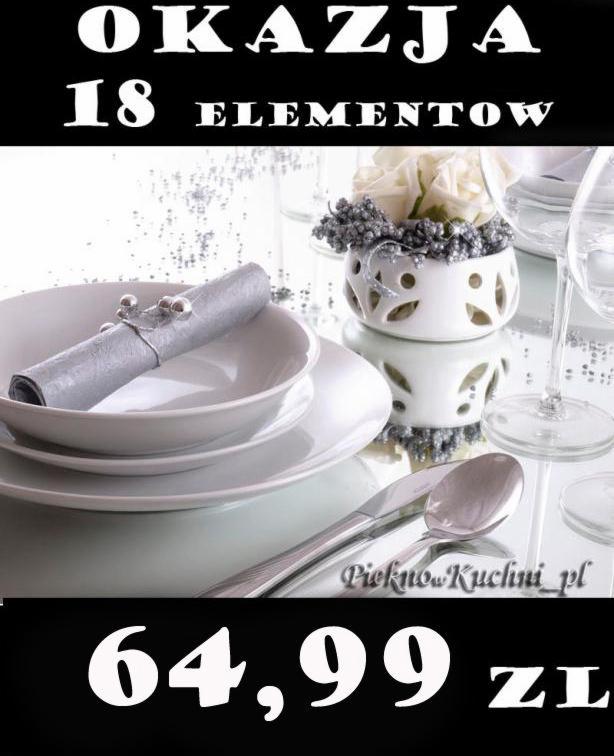 Serwis Obiadowy WHITE CLASIC dla 6 osób 18 częściowy o nowoczesnej formie wydany w kolorze bieli. Serwis można myć w zmywarce.