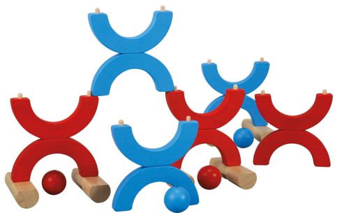 Zestaw zawiera 6 krzyżaków, 4 kolorowe piłki i 6 podstawek.