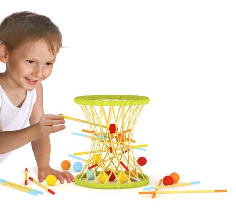 Będzie trzeba mocno główkować, aby wyjąć taki patyczek, który nie naruszy Twoich kulek a jednocześnie spowoduje wypadnięcie kulek przeciwników.