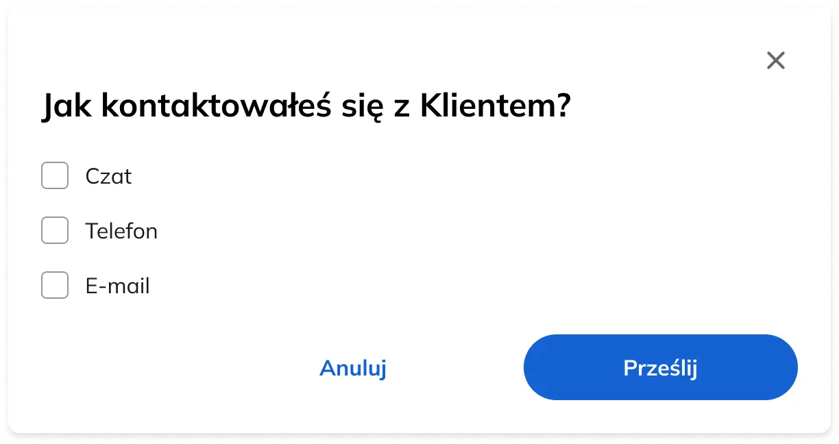 Zaznacz kanały, przez które kontaktowałeś się z Klientem i kliknij “Prześlij”.